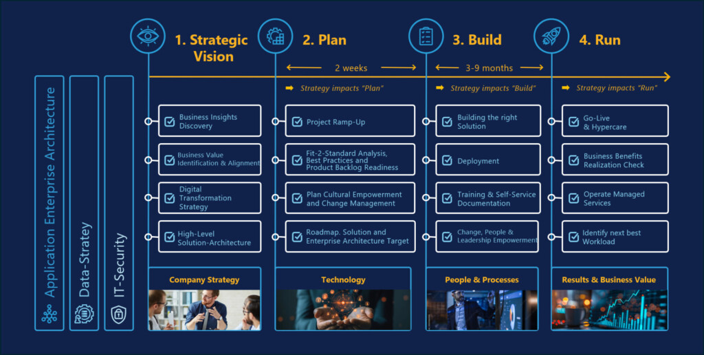 Ein weiteres Schlüsselelement unserer Herangehensweise ist die Berücksichtigung von Menschen & Kultur, denn die erfolgreiche Transformation braucht mehr – sie muss auch kulturell im Unternehmen verankert sein. Ebenso entscheidend ist die Skalierbarkeit, um den Anforderungen globaler Märkte gerecht zu werden.